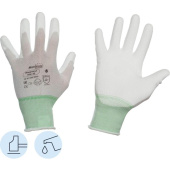 Бесшовная 'дышащая' основа из нейлона с плотностью вязки 13 петель на дюйм обеспечивает великолепную тактильную чувствительность. В покрытии не используется силикон, оставляющий кратеры на поверхности изделия. Полиуретановое покрытие дает эффект 'липкости', что исключает проскальзывание предметов. Зона покрытия обеспечивает стойкость к маслам, нефтепродуктам, углеводородам, истиранию и порезам. Безворсовая основа из нейлона обеспечивает чистоту продукта. Анатомическая форма перчаток снижает усталость рук. Двойной оверлок с цветовой индикацией размера. Для предотвращения возникновения микробной среды и устранения неприятных запахов после производственного процесса перчатка прошла антибактериальную обработку Sanitized Actifresh.