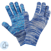 Защитные перчатки с ПВХ 'Елочка'. Большой размер, хорошая плотность. Меланжевая смесь