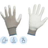 Перчатки рабочие защитные Manipula Specialist Микростатик MG-164 нейлоновые с полиуретановым покрытием, выполнены в белом цвете. Размер: 9, L. Количество пар в упаковке: 1. Длина перчаток: 250 мм. Класс вязки: 13. Модель специально разработана для нейтрализации ESD-разряда, генерирующегося в ходе сборочных работ, связанных с микроэлектроникой. Статическое напряжение снимается за счет вплетения в структуру основы карбоновых волокон.