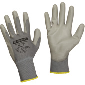 Перчатки для защиты от порезов TOPFORT НПУ01 (размер 8 (M)) изготовлены из нейлона с полиуретановым покрытием. Основа бесшовная, с плотностью вязки 13 петель на дюйм, что обеспечивает высокую чувствительность пальцев. Покрытие из полиуретана нанесено на ладонь и напалки с тыльной стороны. Оно гарантирует хороший захват и высокую тактильную чувствительность. Манжет выполнен в виде удлинённого напульсника с цветовой индикацией размера. Защитные свойства: — Ми — защита от механических воздействий. — Мп — защита от проколов и порезов. Рекомендованы для работы с металлическими деталями с острыми кромками. Подходят для задач со стеклом и строительных работ. Используются при погрузочно-разгрузочных операциях и с инструментами. Эксплуатационный уровень EN388: 2016 — 3121X: — Стойкость к истиранию: уровень 3 (не менее 2000 циклов). — Стойкость к порезу: уровень 1 (индекс не менее 1,2). — Стойкость к разрыву: уровень 2 (25 Н). — Стойкость к проколу: уровень 1 (не менее 20 Н). Соответствуют стандартам: ТР ТС 019/2011, ГОСТ 12.4.252-2013, ГОСТ 12.4.183-91, ГОСТ Р ЕН 1149-5-2008.