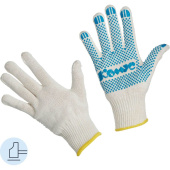Перчатки рабочие защитные Комус хлопковые/полиэфирные с ПВХ покрытием белые (точка, 5 нитей, 10 класс, размер 8, 10 пар упаковке) Универсальные рабочие перчатки х/б с покрытием ПВХ предназначены для защиты рук от мелких механических повреждений и производственных загрязнений. Размер 8, M, цвет белый. Применяются в складских, садовых и ремонтных работах. Перчатки изготовлены из хлопчатобумажной пряжи с покрытием из поливинилхлорида, нанесённым на внутреннюю сторону. Покрытие ПВХ обеспечивает плотный захват и предотвращает соскальзывание деталей. Трикотажные перчатки с манжетой на резинке обеспечивают плотное прилегание к руке. Материалы: 60% хлопок, 40% полиэфир. Вес пряжи — 116.8 текс. Покрытие: ПВХ, точка. Соответствуют ТР ТС 019/2011. Количество пар в упаковке: 10. Количество упаковок в транспортной коробке: 25.