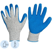 Материал покрытия латекс. Прорезиненное рельефное покрытие из натурального латекса обеспечивает отличный мокрый и сухой захват на скользких поверхностях. Лучшая защита при работе со стеклом. Манжет резинка фиксирует перчатку на руке, защищает запястье от повреждений.