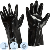 Герметичные кроеные перчатки со сплошным покрытием из неопрена, стойкие к кислотам и щелочам высоких концентраций, нефти и нефтепродуктам (минеральным маслам), контакту с нагретой поверхностью до 250 °С и механическим воздействиям. Внутренняя хлопковая подкладка из джерси обеспечивает рукам комфорт и абсорбцию влаги. Расширенный раструб манжеты для возможности защиты предплечья при работе в зимней спецодежде, а также моментального сброса перчатки в случае опасности. Для предотвращения возникновения микробной среды и устранения неприятных запахов после производственного процесса перчатка прошла антибактериальную обработку Sanitized Actifresh. Материал основы: джерси (хлопок 100%). Материал покрытия: неопрен. Внутренняя обработка: Sanitized Actifresh. Утеплитель: нет. Подкладка: нет. Манжет: удлиненная крага. Эксплуатационные уровни EN: EN 388-3121X , EN 407-X2XXXX, EN 374-1 Type A, EN 374-5. Защитные свойства ТР ТС: Ми Мп Вн К80 Щ50 Нс Нм То Тп250. Класс риска: 2. Толщина, мм: 2,1. Длина, мм: 350. Доступные размеры: 11 (XL). Вес пары, г: 264. Стандарты: ГОСТ 12.4.252-2013, ТР ТС 019/2011 , ГОСТ EN 388-2016, ГОСТ EN 407-2004, ГОСТ EN ISO 374-1-2016/Type A, ГОСТ ISO 374-5-2016, ГОСТ P EN 1149-5-2008. Цвет на изображении товара в интернет-магазине или в печатном каталоге может отличаться от оригинала из-за особенностей цветопередачи монитора.