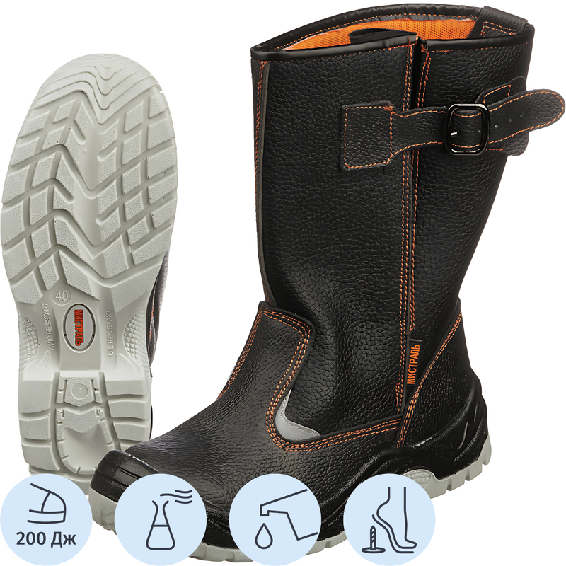 Сапоги рабочие Мистраль Ultra ПУ-ТПУ натуральная кожа черные размер 42