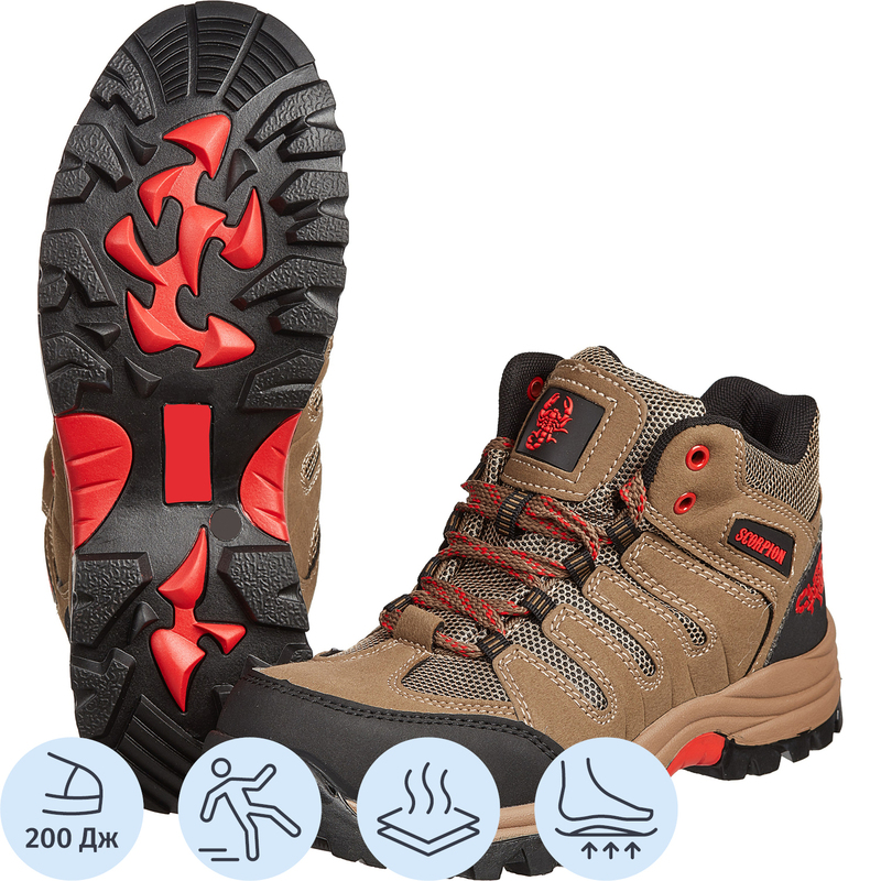 Ботинки рабочие Cкорпион Пионер ПУ-нитрил из микрофибры бежевые/черные с композитным подноском размер 47