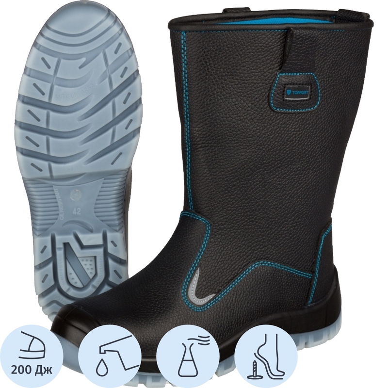 Сапоги рабочие TOPFORT 5 МПП ПУ-ТПУ из натуральной кожи с металлическим подноском черные (размер 42)