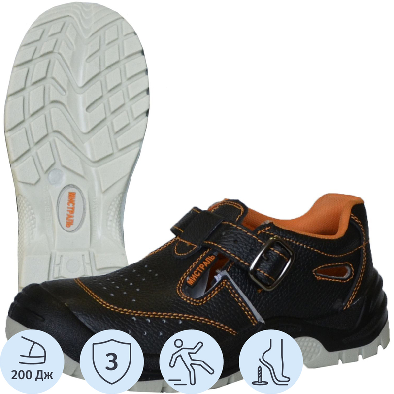 Полуботинки с перфорацией (сандалии) Мистраль ПУ-ТПУ из комбинированной кожи с металлическим подноском черные размер 47