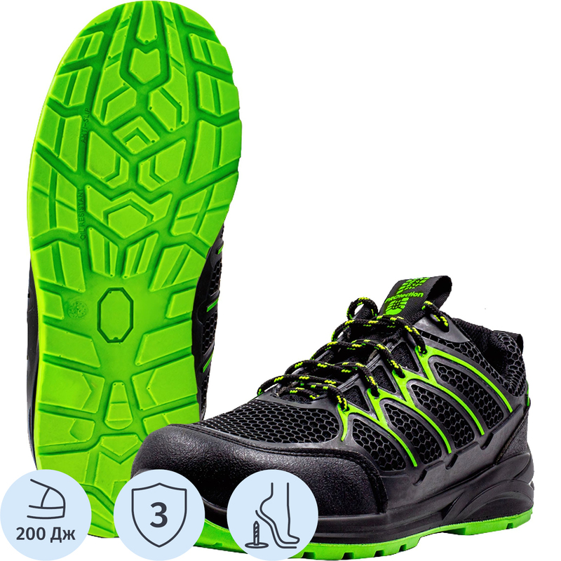 Полуботинки летние рабочие Protection 4232ККС ПУ-ПУ из текстиля черные/зеленые с композитным подноском размер 44