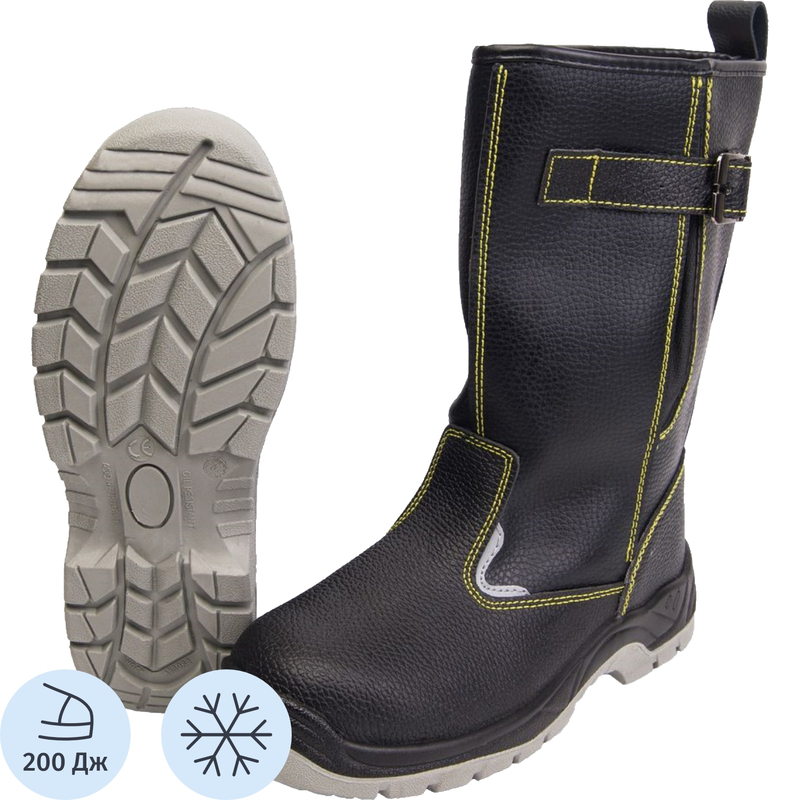 Сапоги рабочие зимние Лайн ПУ-ТПУ из натуральной кожи/микрофибры с металлическим подноском чёрные (размер 43)