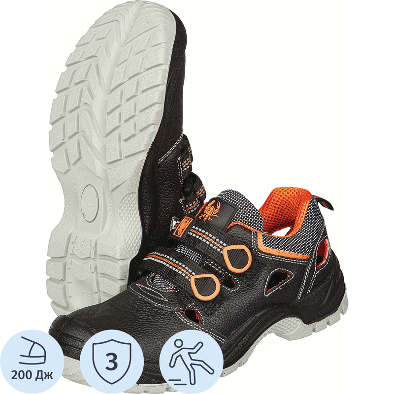 Полуботинки с перфорацией (сандалии) Скорпион Премиум 1303ПК ПУ-ТПУ из натуральной кожи черные с композитным подноском размер 47