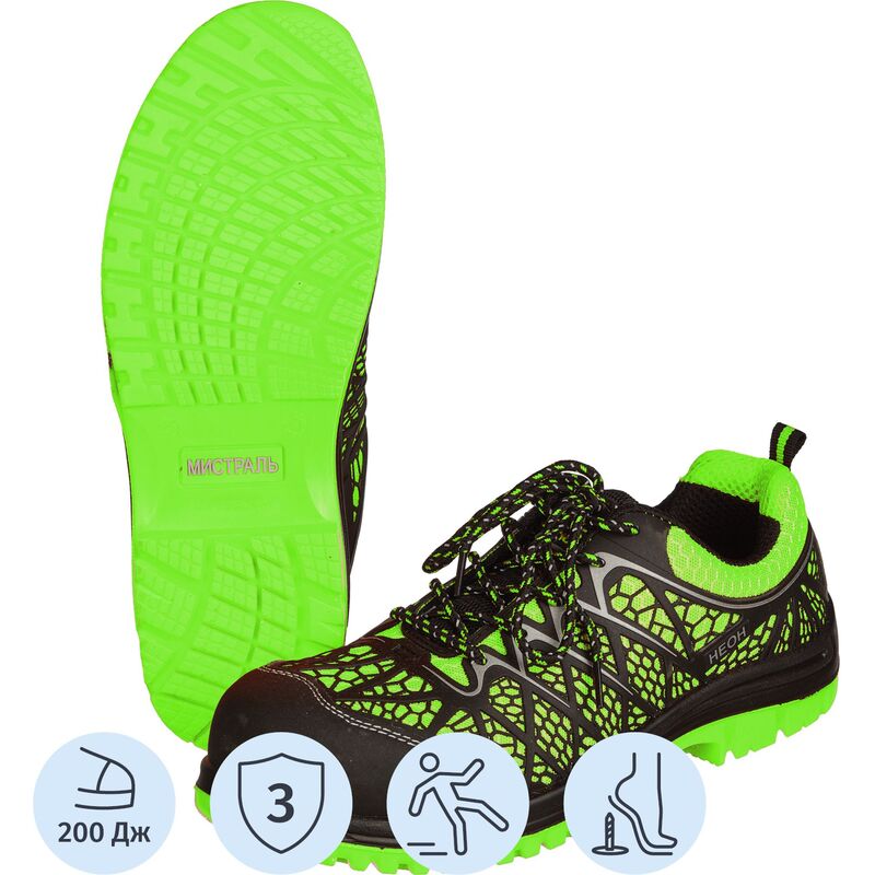 Кроссовки рабочие Мистраль Неон ПУ-ТПУ из микрофибры лаймовые с композитным подноском размер 40