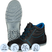 Рабочая обувь из натуральной кожи толщиной не менее 2.0 мм долговечна, устойчива к повреждениям, комфортна в носке. Фиксируется обувь на ноге с помощью шнурков, которые плотно фиксируют стопу, предотвращая вывихи голеностопа. В качестве подкладки используется современный подкладочный материал «3D сетка» на текстильной основе. Сетчатый материал эффективно отводит влагу от стопы. Металлический подносок, который выдерживает силу удара до 200 Дж, снижает количество травм на производстве, защищая стопу от травм. Металлическая антипрокольная стелька, прекрасно защищает стопу от прокола арматурой и острыми предметами.