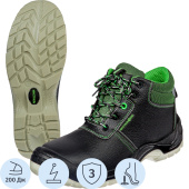 Специализированная рабочая обувь из натуральной кожи долговечна, устойчива к повреждениям, комфортна в носке. Обувь фиксируется на ноге с помощью шнурков, которые плотно обхватывают стопу, улучшая комфорт ношения. В качестве подкладки используется современный подкладочный материал «Типика» на нетканой основе. Сетчатый материал эффективно отводит влагу от стопы, а также обеспечивает гигиеничность. Подносок, который выдерживает силу удара до 200 Дж, что снижает количество травм на производстве, защищая стопу.