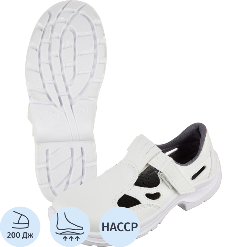 Сандалии Brener выполнены в белом цвете. Размер: 40. Они предназначены для работников пищевой, электронной, атомной и фармацевтической промышленности. Верхняя часть сделана из водонепроницаемой композиционной кожи или натуральной кожи. Она обеспечивает надежную защиту и комфорт при работе. Усиленный металлический подносок повышает безопасность использования. Гигиеническая подкладка обеспечивает оптимальный воздухообмен и эффективно отводит влагу от ног. Подошва из маслобензостойкого и износоустойчивого полиуретана обеспечивает надежное сцепление и долговечность обуви. Анатомическая стелька добавляет дополнительный комфорт при длительном ношении, а литьевой метод крепления делает сандалии надежными и долговечными. Эти сандалии подходят для использования в помещениях с повышенной температурой, обеспечивая надежную защиту и комфорт в трудовых условиях. Соответствуют стандарту ТР ТС 019/2011. Рекомендуется соблюдать условия эксплуатации, хранения и транспортировки для продления срока службы. Гарантийный срок составляет 90 дней, а срок хранения — 36 месяцев при правильном уходе. При воздействии длительных низких температур от −20°C материал обуви может потерять свои свойства, поэтому следует избегать таких условий хранения. Сандалии модели Brener — это надежный и удобный выбор для профессионалов, ценящих качество, комфорт и безопасность на рабочем месте.