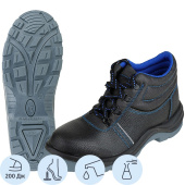 Ботинки рабочие 12/1С ПУ из искусственной кожи с металлическим подноском чёрные (размер 37). Кожаные ботинки Prosafe серии basic c мягким кантом и глухим клапаном для защиты ног от общих производственных загрязнений в отапливаемых помещениях и на открытом водухе в летний период. Сетчатая подкладка и съемная стелька создают комфортные условия носки в течении рабочей смены. Шнуровка обеспечивает комфортную адаптивную посадку. Светоотражающие элементы повышают видимость работников в тёмное время суток, а также на неосвещенной территории. Двухслойная маслобензостойкая полиуретановая подошва литьевого метода крепления имеет вставку в пяточной части подошвы, обладающую амортизационными свойствами и способную гасить ударные нагрузки при ходьбе. Глубина протектора ходового слоя обеспечивает хорошую сцепляемость с поверхностями и препятствует скольжению за счет рельефа протектора. Металлический подносок обеспечивает защиту пальцев стопы от механических повреждений ударной прочностью до 200Дж. Данная модель оснащена внутренней антипрокольной металлической стелькой 1100Н. Данная модель защищает от общих производственных загрязнений, маслобензиностойкость, от кислот и щелочей, от проколов, от истирания. Соответствует стандартам ГОСТ 12.4.137-2001, ГОСТ 12.4.177-89, ГОСТ 12.4.187-97, ГОСТ 28507-99, ТР ТС 019/2011. Законодательные и технические документы