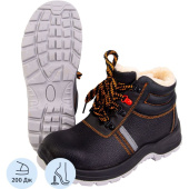 Ботинки рабочие утепленные модели Оранж подойдут как для мужчин, так и для женщин. Выполнены в чёрном цвете. Размер 44. Обувь предназначена для работы в нефтегазовой, горнодобывающей, энергетической, химической промышленности, на транспорте, в агропромышленном комплексе и сервисных службах. Защитные ботинки изготовлены из натуральной кожи. Застежка на шнурок и металлические петли. Утеплитель бежевого цвета и выполнен из искусственного меха. Ботинки оснащены металлоподносками, предохраняющими ноги от удара. Подошва двухслойная: полиуретан и термополиуретан. Основной, полиуретановый слой обеспечивает эластичность подошвы и уменьшает вес обуви для комфортного использования. Термополиуретановый слой обладает гибкостью и прочностью. Литьевой метод крепления подошвы обеспечивает с верхом обуви единое целое, в результате достигается полная герметичность в месте литья. Такой метод крепления является самым прочным и долговечным. Мягкий кант обеспечивает комфортное облегание и боковую поддержку, защищает от возможных боковых ударов, препятствует проникновению грязи и пыли внутрь обуви. Имеется световозвращающий кант для работы в условиях плохой видимости. Верх ботинка имеет контрастные отделочно-скрепляющие строчки оранжевого цвета. Вкладная стелька из нетканого полотна с искусственным мехом. Антипрокольная стелька, дополнительно защищает стопы ног от проколов, порезов, сильных ударов и прочих производственных травм. Колодка обладает полнотно-размерными характеристиками защитной обуви, предназначенной для эксплуатации в зимний и весенне-осенний периоды, дает возможность работать полный рабочий день с комфортом и без усталости. Модель предназначена для защиты от механических повреждений, ударов, проколов, от пониженных температур. Соответствуют стандартам: ГОСТ 12.4.177-89, ТР ТС 019/2011.