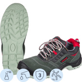 Подошвадвухслойная ПУ-ТПУ . Ходовой слой изготовлен из износостойкого термопластичного полиуретана ТПУ с улучшенным сопротивлением к скольжению, обладающего стойкостью к деформациям и стиранию. Метод крепления подошвы — литьевой. Имеют анатомическую стельку.