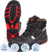 Ботинки рабочие зимние ПРО ПУ из натуральной кожи с композитным подноском чёрные (размер 44). Ботинки ПРО шерстяной мех ПУ/HP КП КС (ЗБ-МПС/2) представляют собой надежный и удобный выбор для работников, которым необходима долговечная и защитная обувь в условиях повышенных опасностей на производстве, но не предназначены для сварочных работ и работ с высококонцентрированными кислотами. Ее инновационные материалы, высокая степень комфорта и защиты делают ее идеальным решением для профессионалов, ценящих свое здоровье и безопасность на рабочем месте. Ботинки изготавливаются путем литьевого метода крепления подошвы. Ботинки ПРО обеспечивают защиту от механических повреждений, от общих производственных загрязнений, от пониженных температур, от проколов, истирания, от скольжения, ударов. Ботинки ПРО (ЗБ-МПС/2) изготавливаются из натуральной кожи (юфть) 1.8 мм с отделкой из современных обувных материалов и утеплителем шерстяной мех. Двухслойная подошва из нитрильной резины и ПУ. Слой из полиуретана и пятка обуви обладает амортизирующими свойствами, гасит ударные нагрузки, а также обеспечивает легкость и комфортность обуви, а ходовой слой изготовлен из износостойкой нитрильной резины. Полиуретан термопластичен, выполнен литьевым методом крепления, имеет свойства улучшенной амортизации, стойкость к деформациям и истиранию. Рисунок протектора подошвы обеспечивает защиту от скольжения по зажиренным и скользким поверхностям. Подошва обладает эффектом самоочищения от грязи. Для защиты от ударов применяется внутренний защитный носок из композита ударной прочностью 200 Дж (Мун 200) с прокладкой, препятствующей надавливанию при ходьбе. Глухой клапан-язык защищает от попадания внутрь мелких предметов, брызг, камней и пыли. Мягкий кант обеспечивает комфорт и защищает ногу от боковых ударов. Внутренняя встроенная стелька из легкого синтетического материала (кевлар) гарантирует защиту от проколов (до 1200Н). Верх обуви имеет светоотражающие вставки, что делает вашу работу безопасной в темное время суток. Обувь соответствует стандартам ТР ТС 019/2011. Срок эксплуатации после выдачи обуви составляет 70 дней при соблюдении правил ухода, эксплуатации и хранения. Законодательные и технические документы