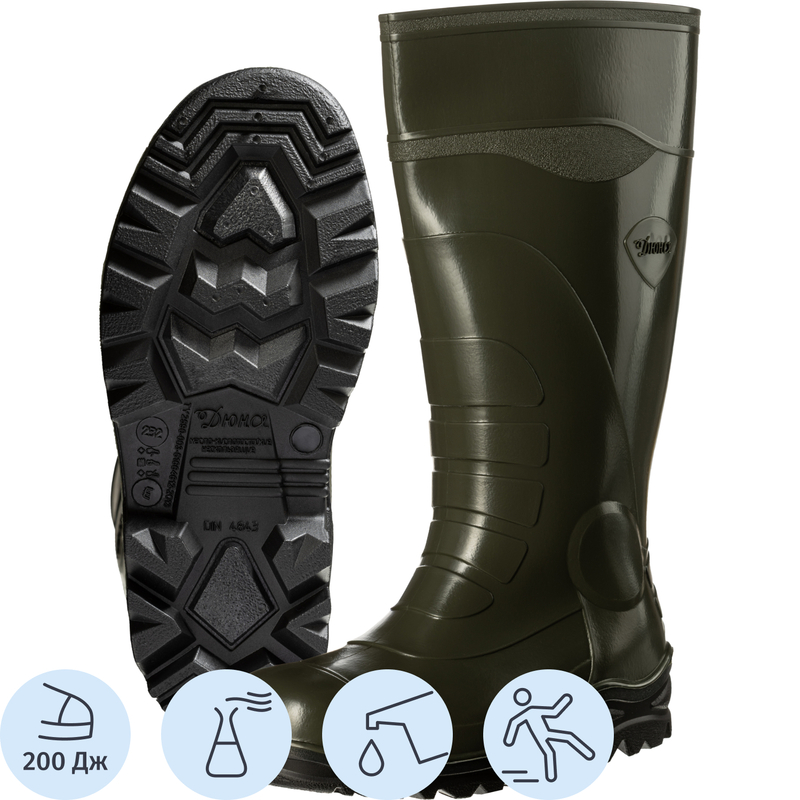 Сапоги рабочие мужские 173 ПВХ оливковые с металлическим подноском (размер 45)