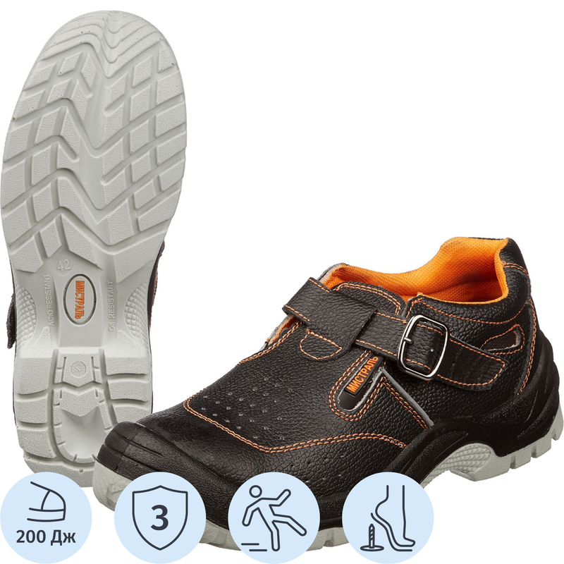 Полуботинки с перфорацией (сандалии) модели Мистраль — универсальный выбор как для мужчин, так и для женщин. Изготовлены из комбинированной кожи в чёрном цвете предназначены для использования в различных отраслях, включая строительство, ЖКХ, нефтегазовую и химическую промышленность, агропромышленный комплекс и металлургию. Размер: 49. Материал верха — комбинированная кожа, обладающая воздухопроницаемыми свойствами. Подкладка выполнена из современного подкладочного материала ’Типика’, который обеспечивает вентиляцию и гигиеничность. Фиксация на ноге осуществляется ремнем с пряжкой. Металлический подносок и антипрокольная стелька защищают от механических воздействий. Подошва состоит из двух слоев: промежуточный полиуретановый слой придает легкость, ходовой слой из термополиуретана обладает повышенным сопротивлением к скольжению и деформациям. Метод крепления подошвы — литьевой, обеспечивающий надежность и герметичность. Сандалии рекомендуются для использования в помещениях с повышенной температурой. Защитные свойства — от общих производственных загрязнений, скольжения, от механических повреждений, проколов, ударов. Гарантийный срок составляет 70 дней при соблюдении правил ухода, эксплуатации и хранения. Товар соответствует стандартам ГОСТ 12.4.033-77, ГОСТ 12.4.177-89, ГОСТ 28507-99, ГОСТ Р 12.4.187-97, ТР ТС 019/2011. Рекомендуется использовать сандалии согласно инструкциям по эксплуатации для максимальной эффективности и комфорта. Законодательные и технические документы
