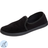 Вельветовая ткань верха обуви, состоящая из натуральных хлопковых волокон, делает тапочки более прочными и эластичными. Обувь из данной ткани обладает износостойкостью и долговечностью. Подошва из ПВХ делает тапочки более долговечными и прочными, скреплена подошва по методу прямого прилива (литьевой).