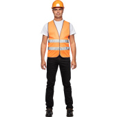 ремонтно-строительных работ на проезжей части или железной дороге и в других опасных зонах. Рекомендован к использованию работниками коммунальных служб, водителями автомобилей, пешеходами и велосипедистами. Сочетание оранжевого цвета и светоотражающих полос обеспечивает его заметность как днем, так и в темное время суток. Жилет с центральной застежкой наленту-липучку надевается поверх другой одежды. Изделие соответствует второму классу защиты, изготовлено из 100% полиэфира плотностью 100 г/кв.м. Ширина светоотражающей ленты — 50 мм. Дополнительно к типовому размеру применена надбавка на свободу облегания, для использования с верхней одеждой. Коллекция сигнальных жилетов Тип Е представлена в лимонной и оранжевой неоновой расцветке.