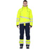 Куртка рабочая зимняя мужская Active с СОП синяя/жёлтая из ткани Protect (размер 48-50, рост 170-176) Зимняя куртка для защиты от холода, механических воздействий и загрязнений при выполнении работ в строительстве, логистике, ЖКХ, нефтегазовой и других отраслях. Изделие выполнено из ткани Protect, обеспечивающей прочность и износостойкость. Основной материал — 100% полиэфир, плотность 190 г/кв.м. В качестве утеплителя используется слайтекс, плотностью 100 г/кв.м, который надёжно сохраняет тепло. Подкладка выполнена из вискозы и полиэфира. Внутренняя часть воротника и верх спинки отделаны полибруше, обеспечивающим комфорт при носке. Защитные свойства: Со — сигнальная (2-й класс защиты). Тн — от пониженных температур воздуха (1 класс защиты). З — защита от общих производственных загрязнений. Ми — защита от механических воздействий (истираний). Изделия в комплекте Куртка мужская утепленная Active с Брюками мужскими утепленными Active соответствуют 3 классу сигнальной одежды повышенной видимости. Свободный крой не стесняет движения. Индивидуальная регулировка объёма предусмотрена по нижнему краю куртки с помощью эластичного шнура и низу рукавов — патами. Трикотажные манжеты внутри рукавов с разрезом под большой палец. Съёмный капюшон с регулировкой глубины и высоты при помощи эластичного шнура. Карманы: два нагрудных и два нижних кармана на молнии, внутренний карман под документы формата А4 между бортом и ветрозащитной планкой, карман на левом рукаве для пропуска, накладной карман из сетки на изнанке левой полочки, а также тесьма с кнопкой для крепления бейджа внутри одного из нагрудных карманов. Воротник-стойка. Основная застёжка — двухзамковая молния с ветрозащитной планкой на кнопках. Сигнальные элементы представлены двумя охватывающими световозвращающими полосами шириной 50 мм по торсу и рукавам. Для комфорта в области спины предусмотрены вентиляционные отверстия в рельефах, застёгивающиеся на молнию. Куртка соответствует требованиям ТР ТС 019/2011, ГОСТ 12.4.303-2016, ГОСТ 12.4.281-2014. Подобрать размер Цвет на изображении товара в интернет-магазине или в печатном каталоге может отличаться от оригинала из-за особенностей цветопередачи монитора.