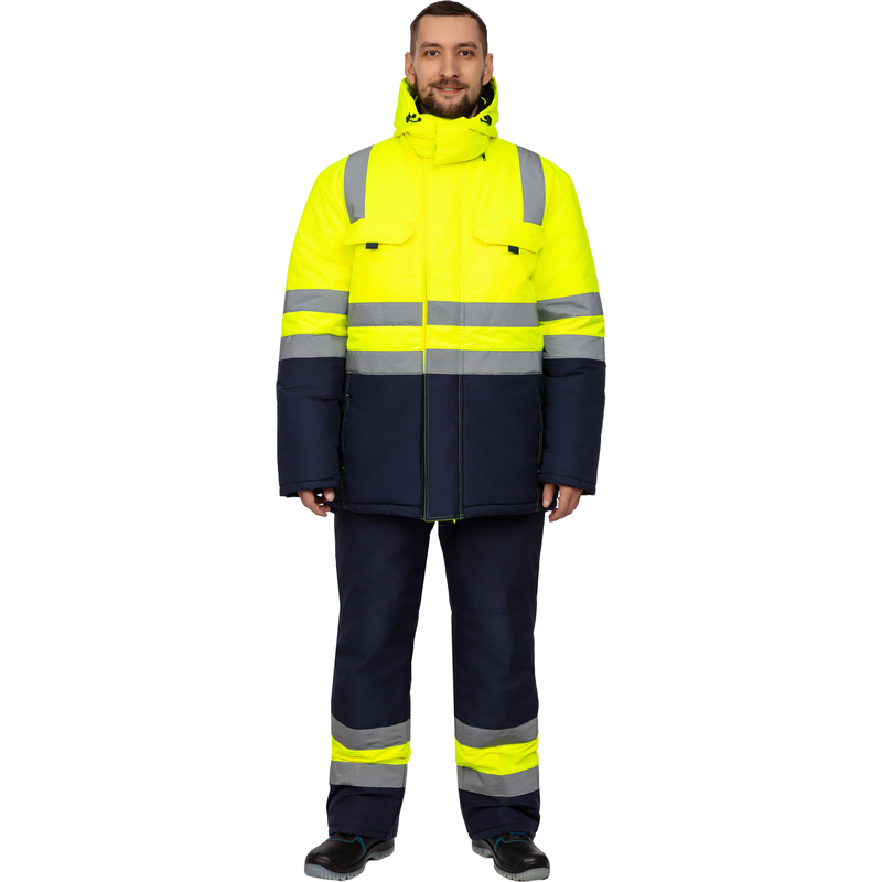 Куртка рабочая зимняя мужская зс04-КУ с СОП флуоресцентная жёлтая/синяя (размер 52-54, рост 182-188)