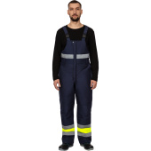 Полукомбинезон рабочий зимний мужской зс04-ПК с СОП синий/лимонный (размер 52-54, рост 194-200) Полукомбинезон мужской утеплённый предназначен для работы в условиях пониженных температур в IV и особом климатических поясах. Изделие относится к 3 и 4 классу защиты и применяется на открытых территориях и в неотапливаемых помещениях. Рекомендуется для использования в сферах автомобильной и лёгкой промышленности, агропромышленного комплекса и бытового обслуживания. Ткань верха лимонного цвета, мембрана хайтек 140 г/кв.м, ПЭ 100%, мембрана 3000/3000. Ткань верха синяя мембрана от поставщика «Текстиль механик» аналог РейнФорс, микрорипстоп, 140 г/кв.м плотность, ПЭ 100%, мембрана 10000/10000. Основной материал — ткань из 100% полиэстера плотностью 140 г/кв.м. Подкладка выполнена из таффеты. В качестве утеплителя использован синтепон, обладающий устойчивостью к деформации, лёгкостью и хорошими теплоизоляционными свойствами. Конструкция наколенников с выточками обеспечивает удобство при выполнении работ в положении на коленях. Защитные свойства: — Защита от пониженных температур. Полукомбинезон имеет прямой крой и отрезной пояс. Центральная застёжка выполнена в виде двухзамковой молнии, закрытой планкой на кнопке. Длина бретелей регулируется при помощи резинки, фастексов и двухщелевых пряжек. Объём по спинке регулируется эластичной тесьмой, а в поясе расположены шлёвки для крепления ремня. Карманы размещены по бокам в подрезных бочках, имеют классическую форму с наклонным входом. Сигнальные элементы включают световозвращающие полосы шириной 50 мм: одна полоса проходит горизонтально по лифу и спинке, две — параллельно в нижней части брюк. Температура стирки 30 градусов, мягкий режим. Отбеливание запрещено. Насыщенное влагой изделие сушить в подвешенном виде. Глажение запрещено, сухая чистка запрещена. Перед стиркой необходимо застегнуть всё застёжки-молнии, кнопки, контактные ленты, вывернуть изделие наизнанку. Выкручивать и выжимать изделие запрещено. При сушке не допускать контакта с отопительными приборами. Изготовлено в соответствии с требованиями ТР ТС 019/2011. Подобрать размер Цвет на изображении товара в интернет-магазине или в печатном каталоге может отличаться от оригинала из-за особенностей цветопередачи монитора.