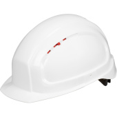 Каска защитная TOPFORT Универсал 301 белая с храповым механизмом для работ на высоте с четыркехточечным подбородочным ремнем. Каска с двойным ребром жесткости, укороченным козырьком, увеличенной защитой затылочной части и храповым механизмом регулировки размера. С помощью храповика можно отрегулировать каску по размеру, не снимая ее с головы. Водосточный желоб по окружности каски. Площадка для нанесения логотипа спереди и с боков. Каска обладает тремя ступенями регулировки по глубине посадки на голове. В затылочной части каски установлен держатель для фиксации на каске наголовной ленты закрытых очков. Одновременно с этим держатель является УФ-индикатором старения каски: при воздействии УФ-лучей, цвет держателя выгорает, выцветший держатель означает, что нужно сменить каску. В корпусе каски имеются пазы для совместного ношения с защитными лицевыми щитками и противошумными наушниками. Сменная налобная лента (обтюратор) из мягкой ткани для повышения комфорта ношения. Несущая лента внутренней оснастки имеет специальные крючки в затылочной части для крепления пелерины. Поставляется в комплекте с 4х точечным текстильным подбородочным ременем, который крепится к корпусу каски при помощи карабина, регулировка по длине осуществляется при помощи пряжки, для быстрого съема каски с головы установлена застежка. Характеристики: — Материал корпуса: ABS-пластик. — Материал оголовья: текстильный. — Регулировка оголовья: храповик. — Крепление оголовья: в восьми точках. — Наличие вентиляционных отверстий: есть (регулируемые). — Диапазон рабочих температур: −30°C + 50°C. — Размер: 52-65 см (шаг — 2,5 мм). — Вес: 420 г. — Амортизация: 50 Дж. — Сопротивление перфорации: 30 Дж. — Устойчивость к искрам, брызгам металла БМ (ММ). — От механических повреждений. — Вентиляция внутреннего пространства: 320 мм. Соответствует стандартам: ГОСТ EN 397-2012, ТР ТС 019/2011. Законодательные и технические документы