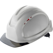 Каска СОМЗ-80 Абсолют Престиж Rapid белая серый козырек (783717). Предназначена для обеспечения защиты верхней части головы пользователя от повреждений падающими предметами, от воздействия влаги, брызг металла, химических рисков на производственных площадках во всех отраслях промышленности. Материал: корпус из полипропилена (Termotrek), козырек из прозрачного поликарбоната, серый. На козырьке каски нанесена несмываемая маркировка с защитными свойствами. На внутренней стороне корпуса находится этикетка, на которой можно указать дату начала и окончания эксплуатации каски. Увеличенное внутреннее пространство и более глубокая посадка каски на голове пользователя. Разработана специально для ношения с зимними головными уборами, утепленными подшлемниками. Масса каски: 436 г (изделие в сборе с регулировкой размера Rapid). Серый козырек защищает от яркого солнца. Срок службы/эксплуатации — 24 месяца. Срок хранения/годности — 60 месяцев. Гарантийный срок — 12 месяцев. Соответствует ТР ТС 019/2011, ГОСТ EN 397-2020. Законодательные и технические документы: