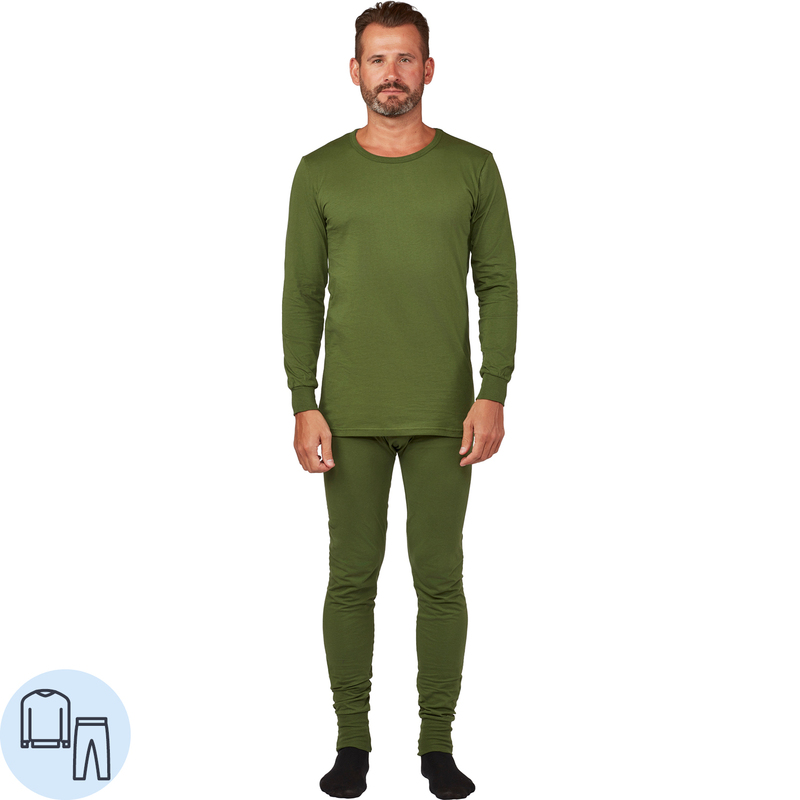 Белье нательное мужское зимнее трикотажное хлопок с начесом оливковое (размер 64-66, рост 194-200 см)