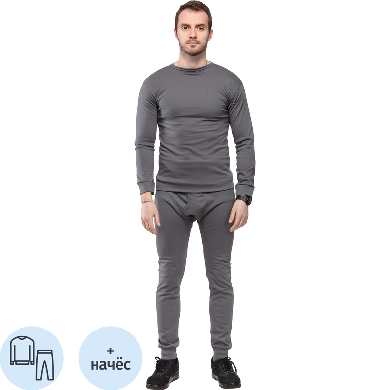 Белье нательное мужское зимнее трикотажное хлопок с начесом серое (размер 48-50, рост 182-188)
