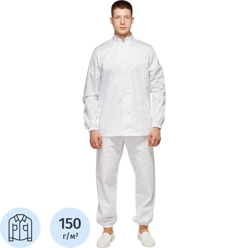 Куртка для пищевого производства у17-КУ САТ ХАССП мужская белая с длинным рукавом (размер 56-58, рост 182-188)