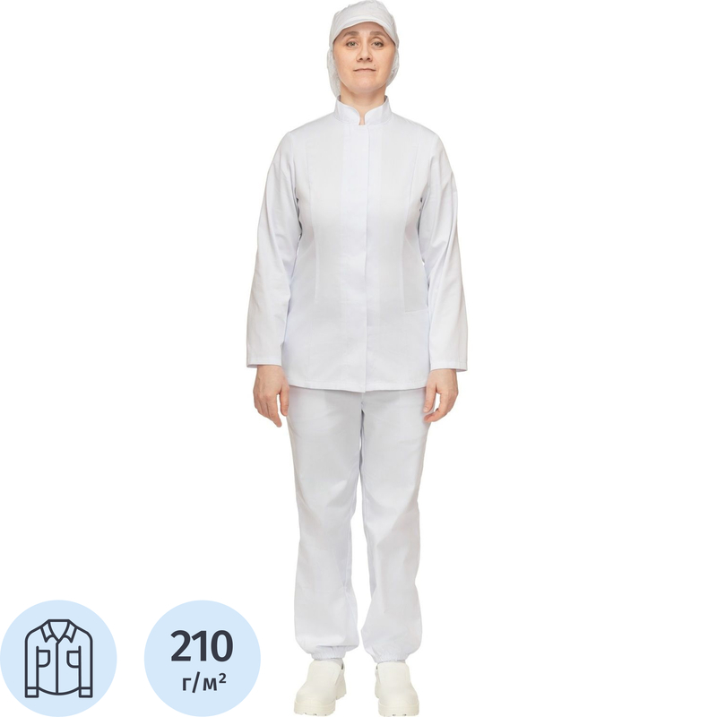 Куртка для пищевого производства у17-КУ ХАССП женская белая с длинным рукавом (размер 44-46, рост 170-176)