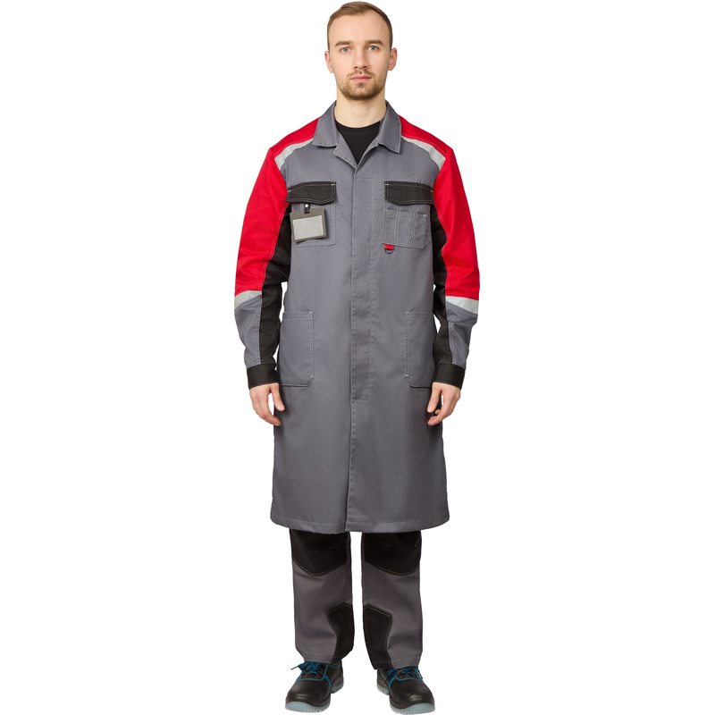 Халат рабочий л23-ХЛ мужской серый/красный (размер 64-66, рост 170-176)