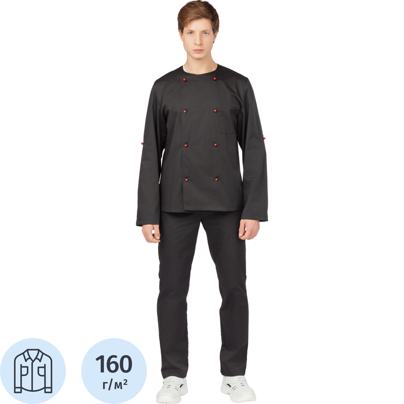 Китель поварской у23-КУ плюс мужской чёрный с длинным рукавом (размер 64-66, рост 170-176)