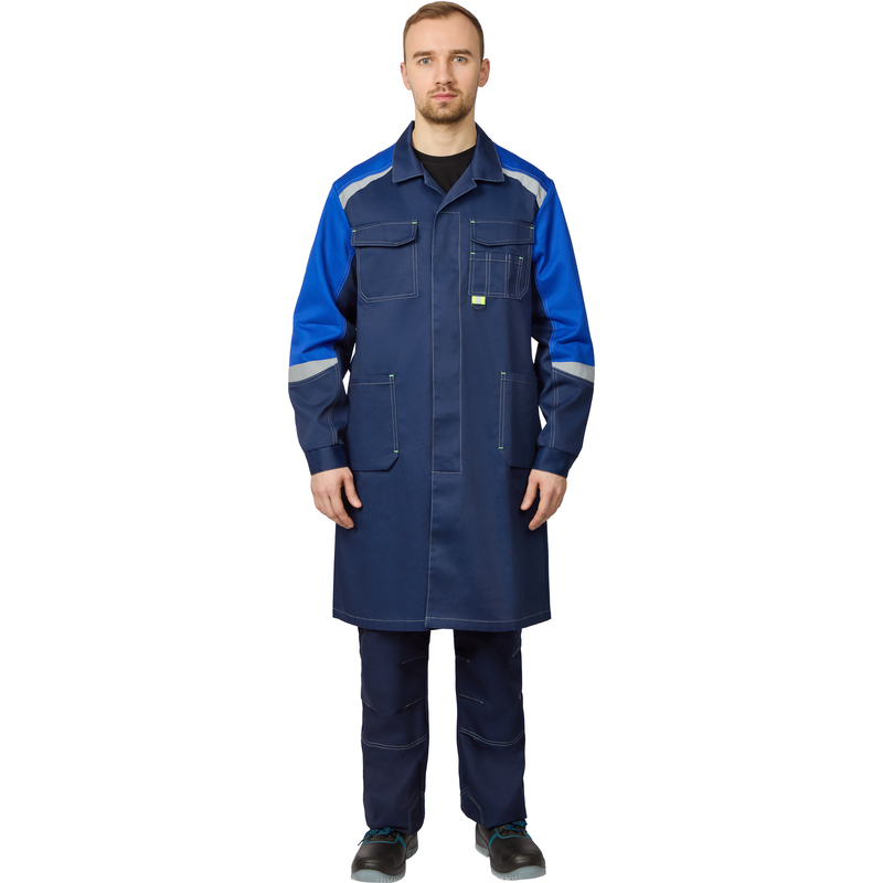 Халат рабочий л23-ХЛ мужской синий/васильковый (размер 64-66, рост 182-188)