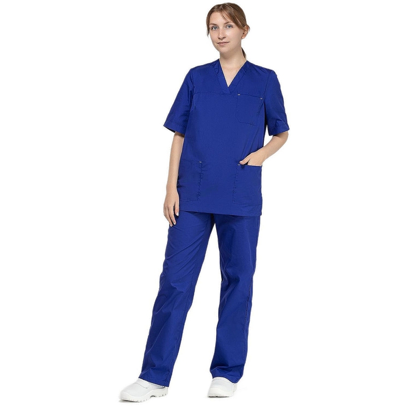 Костюм медицинский женский м05-КБР плюс с коротким рукавом васильковый (размер 60-62, рост 170-176)