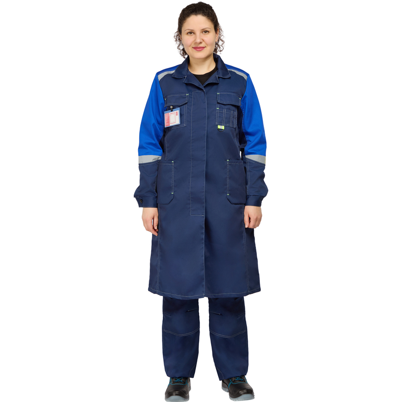 Халат рабочий л23-ХЛ женский синий/васильковый (размер 64-66, рост 170-176)