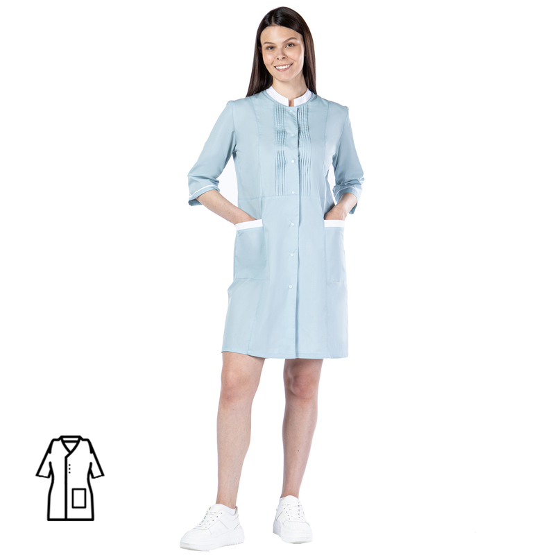 Халат для горничных и уборщиц с коротким рукавом У28 ХЛ голубой/белый (размер 48, рост 158-170)