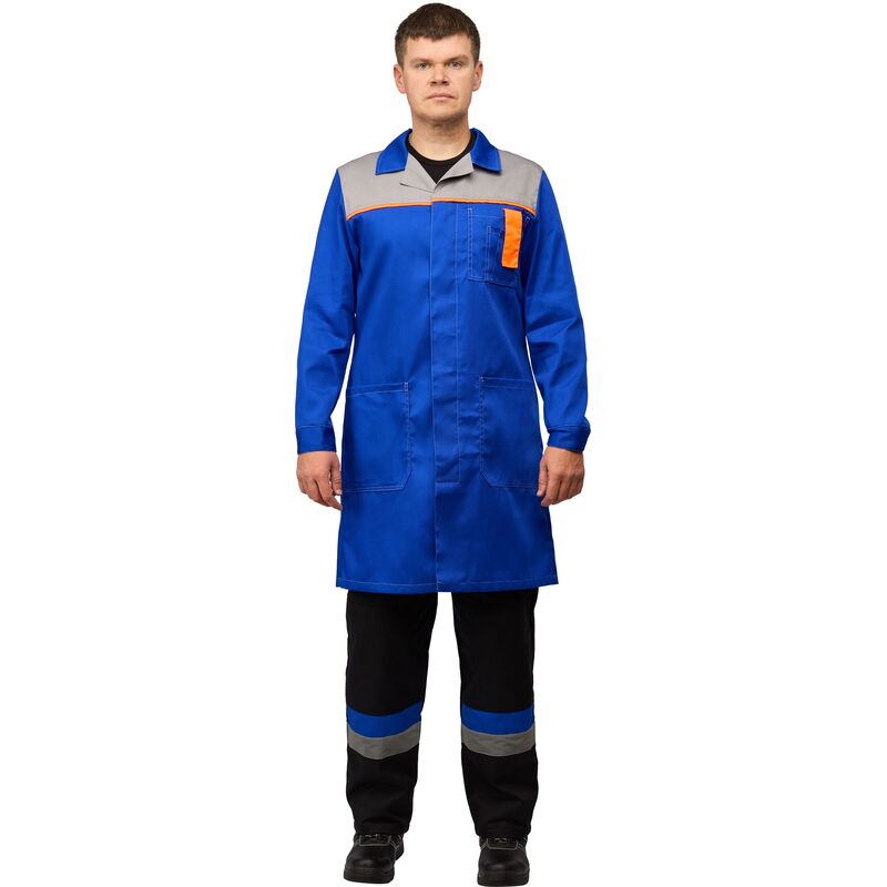 Халат рабочий Л10-ХЛ мужской васильковый/светло-серый (размер 60-62, рост 182-188)