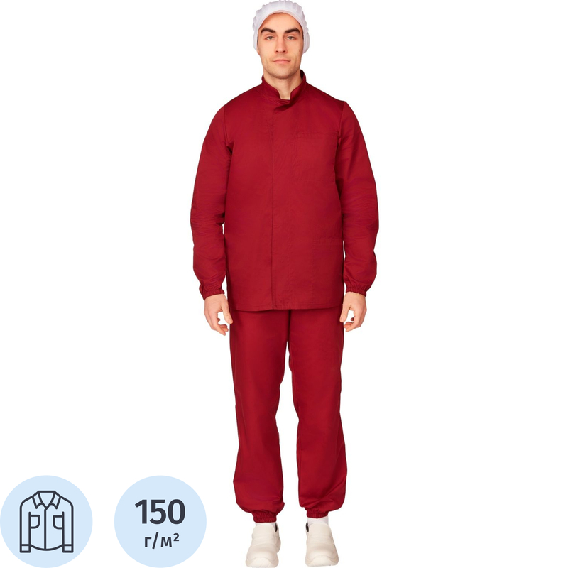 Куртка для пищевого производства у17-КУ САТ ХАССП мужская бордовая с длинным рукавом (размер 48-50, рост 170-176)