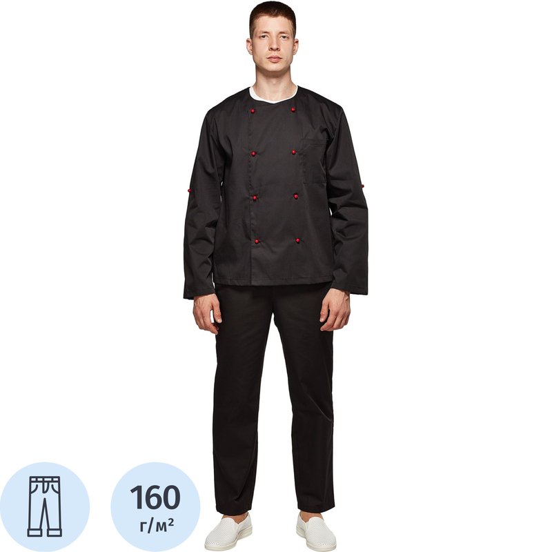 Костюм повара Шеф-повар мужской белый/чёрный тиси рукав 3/4 (120 г/кв.м, размер 60-62, рост 170-176)