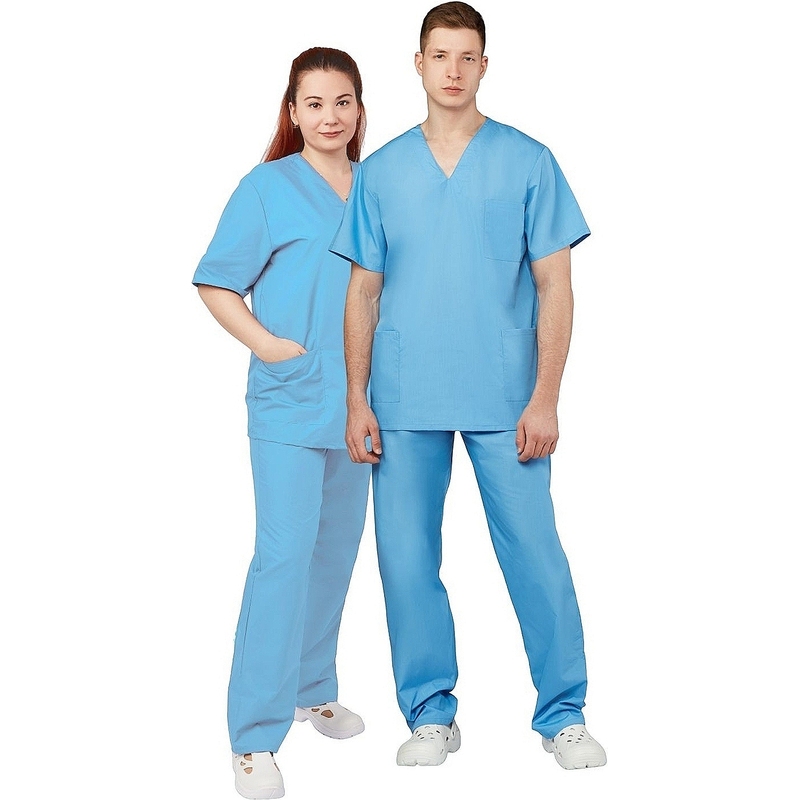 Костюм хирургический м05-КБР с коротким рукавом голубой с карманом (размер 44-46, рост 182-188)