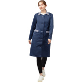 Халат рабочий у07-ХЛ женский синий (размер 48-50, рост 158-164) Женский рабочий халат у07-ХЛ подходит для использования в энергетике, сельском хозяйстве, строительстве, фармацевтике, пищевой промышленности, клининговых службах, гостиничном сервисе, организациях здравоохранения и автомобильной промышленности. Изделие выполнено из двух видов тканей: грета (плотность 190 г/кв.м, состав 80% полиэстер и 20% хлопок) и ТиСи (плотность 120 г/кв.м, состав 65% полиэстер и 35% хлопок). Эти материалы обеспечивают прочность и комфорт при ежедневном использовании. Защитные свойства: — З — защита от общих производственных загрязнений. Халат имеет полуприлегающий силуэт с рельефами по переду и спинке. Воротник отложной, выполнен из отделочной ткани, горловина V-образная. Длинные одношовные рукава снабжены манжетами, застёгивающимися на пуговицы. Центральная застёжка однобортная, на пуговицах, обеспечивает надёжную фиксацию. Два накладных кармана с декоративной отделкой удобны для хранения мелких предметов. Талия регулируется поясом и шлёвками в боковых швах. Рекомендации по уходу: — стирка при температуре не выше 40°C; — запрещено отбеливание и химчистка; — глажение при температуре до 110°C. Халат соответствует требованиям ГОСТ 12.4.131-83 и ТР ТС 019/2011. Подобрать размер Цвет на изображении может отличаться от оригинала из-за особенностей цветопередачи монитора.