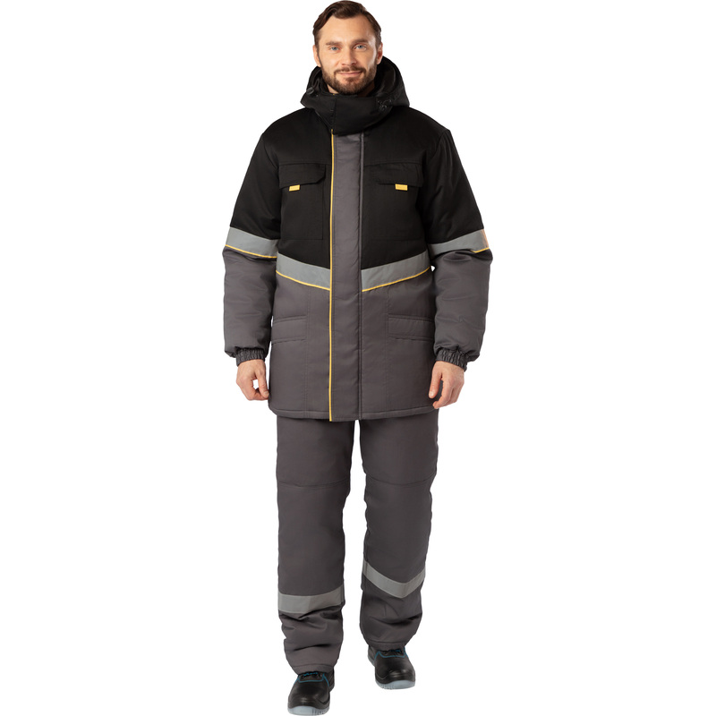 Костюм рабочий зимний мужской з43-КПК с СОП серый/черный (размер 60-62, рост 194-200)