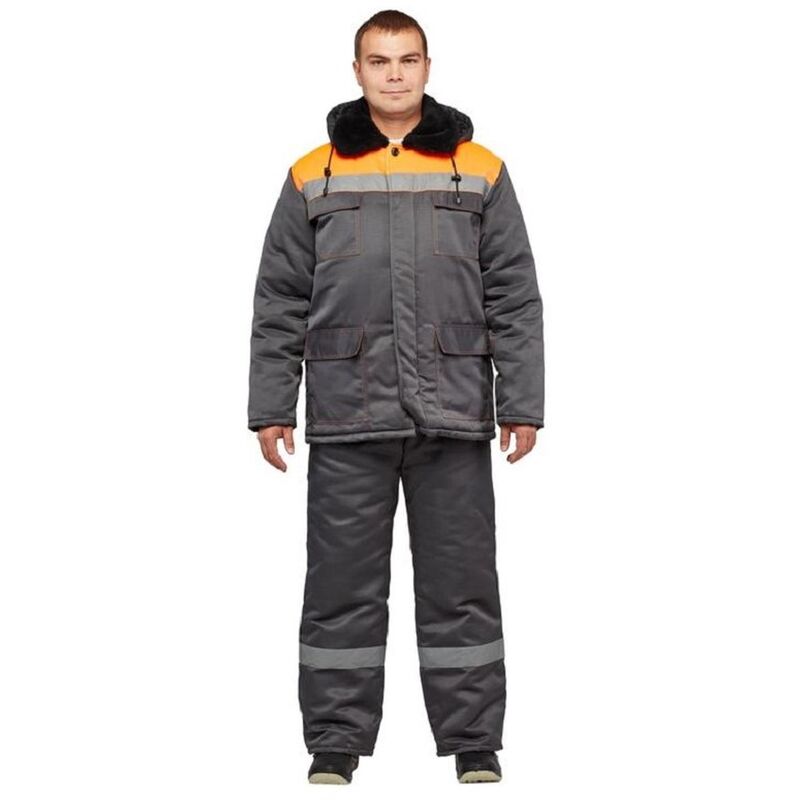 Костюм рабочий зимний мужской з35-КПК с СОП серый/оранжевый (размер 56-58, рост 170-176)