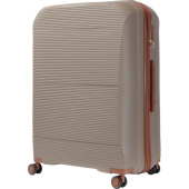 Вместительный чемодан Fabretti размера XL с возможностью увеличения объема, размер: 35×57×78 (40 с расширением). Модель выполнена из полипропилена — современного материала, для которого характерны высокая ударопрочность, стойкость к перепадам температур, отличная износостойкость. Основной бежево-серый оттенок подчеркнут коричневым оттенком в деталях аксессуара.