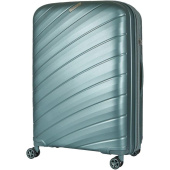 темно-бирюзовом оттенке выполнена из полипропилена — современного материала, для которого характерны высокая ударопрочность, стойкость к перепадам температур, отличная износостойкость. Внутри два отделения: одно — с эластичнымиремнями-фиксаторами и с прозрачнойперегородкой-сеткой на молнии; другое — с тканевой перегородкой на молнии и двумякарманами-сетками на молнии. Выдвижная ручка фиксируется в3-х положениях. Сверху и сбоку есть ручки для удобства переноски. 4 двойных колеса вращаются на 360 градусов, позволяя чемодану двигаться легко и плавно.